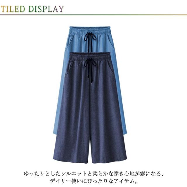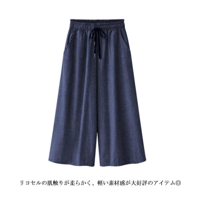 ワイドパンツ ウェストゴム ガウチョパンツ レディース 7分丈 ポケット付き 涼しい ハイウェスト 夏 イージーパンツ 薄手 ゆるパンツ カジュアル デニムパンツ デニムパンツ