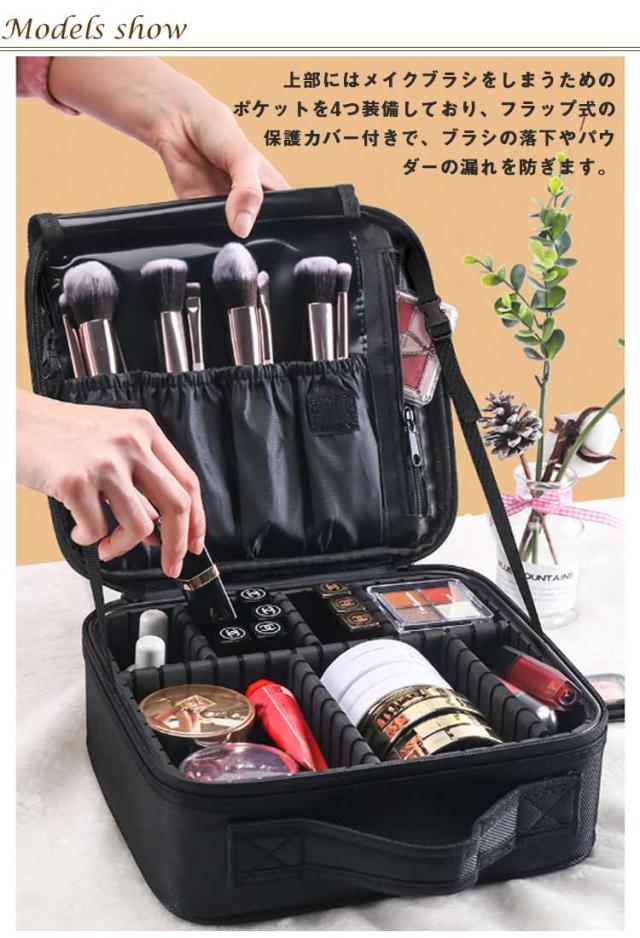 | メイク道具をきちんと仕分けできる本格派のメイクボックス! 上部にはメイクブラシをしまうためのポケットを4つ装備しており、フラップ式の保護カバー付きで、ブラシの落下やパウダーの漏れを防ぎます。 メインポーチは自由にレイアウトできる取り外し可能な仕切り付きで、たくさんのメイク道具を大きさに合わせて自由に収納できます。 たくさん入るので、旅行などの持ち運びにもおすすめです。 メイク道具が多い方にぴったりの一品です。 | |