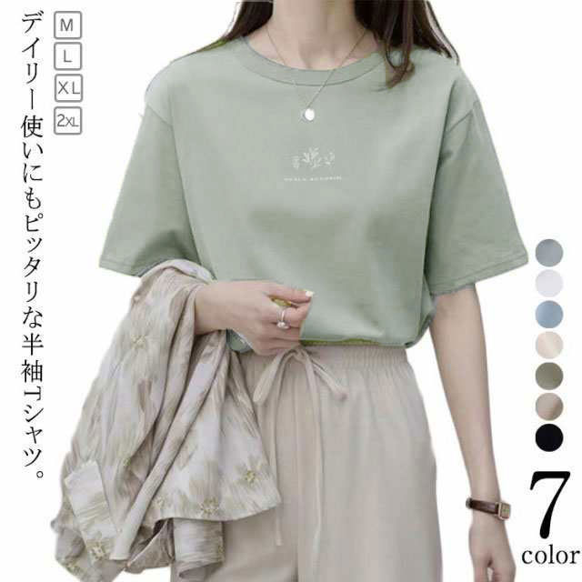 肌触りいい 全7色 半袖 韓国ファッション 黒 白 全7色 Tシャツ クルーネック レディース 半袖Tシャツ 無地 カジュアル 大人可愛い トップス 柔らかい シンプル インナー 体型カバー おしゃれ 春夏 通勤