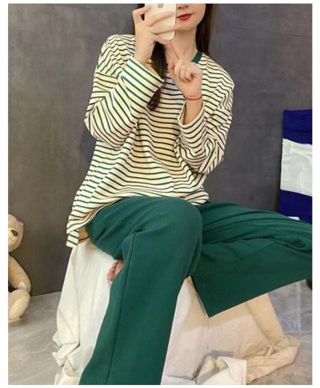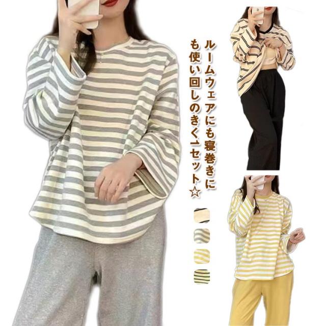 春 ルームウェア 秋 夏 入院 ナイトウェア カップ付き ボーダー柄 レディース ロングパンツ 長袖 冬 寝間着 ナイトウエア 着心地 部屋着 パジャマ 産後