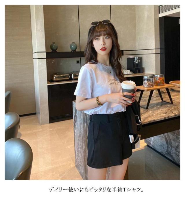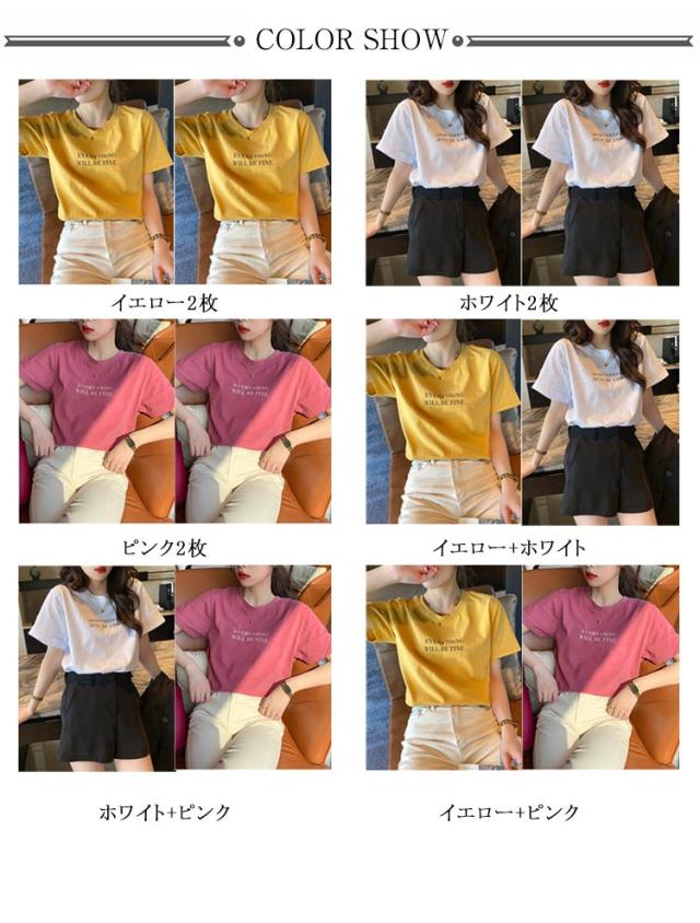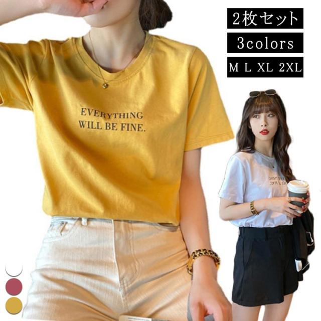 2枚セット!Tシャツ トップス 白 レディース 肌触りいい 2枚セット!Tシャツ クルーネック インナー 半袖Tシャツ 無地 ロゴ 体型カバー 柔らかい プリント シンプル カットソー 黒 ラウンドネック おしゃれ 春夏 通勤
