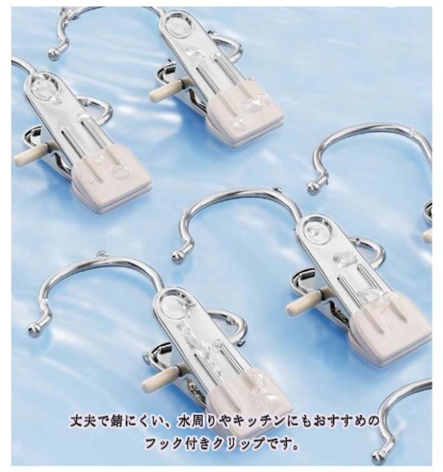 | 散らかった小物の収納・整理に最適♪ 挟んで、どこにでも引っ掛けられるフック付きクリップ、キャップやソックス、靴、小物などなど様々な物を吊るして干したり吊下げて保管するのに最適。 軽量かつ耐久性に優れたステンレス素材で、クローゼットに限らず屋外でも使えます。 コンパクトながら、強力ホールド力で手袋やマフラー、帽子など散らかす小物だけでなく、ズボンやスカートも掛けることができ、省スペースで有効活用できます。 ポータブルで、持ち運び便利です。旅行先、出張先など様々な場所でご利用頂けます。 先端はPVCコーティングで、滑り止め効果◎滑らかで衣類を痛めません。 丈夫で錆にくい、水周りやキッチンにもおすすめのフック付きクリップです。 毎日の家庭での使用に最適で、洗濯店、旅行、家庭、業務用にも最適です。普通のソックス、帽子、靴、小物とか、キッチン、バスルーム、旅行、部屋で全部使えます。 | |