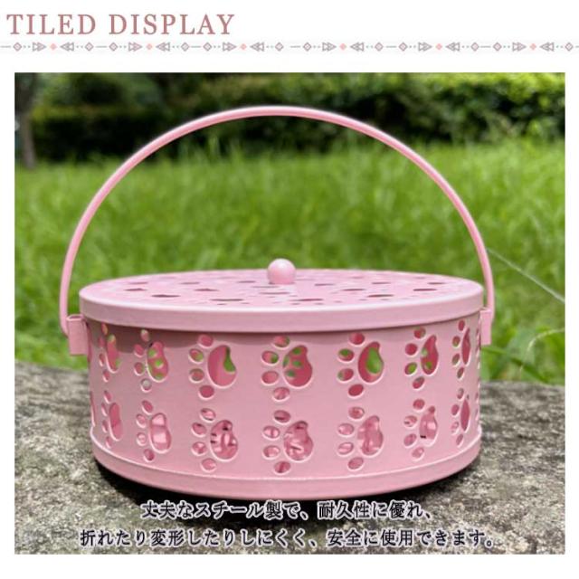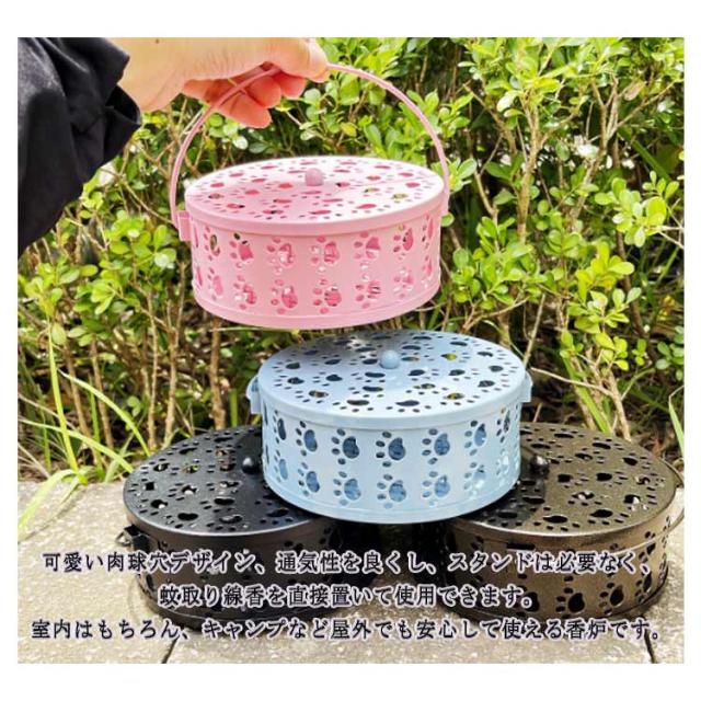 蚊遣り 吊り下げ 蚊やり 蚊遣り 蚊遣器 可愛い 肉球 フタ付き 2個組 蚊取り線香 蚊取り線香入れ 持ち手付き 2個組 蚊取り線香ホルダー 安全防火 室内 室外 庭仕事 キャンプ お香立て 香炉 ブルー ピンク ブラック ブラウン