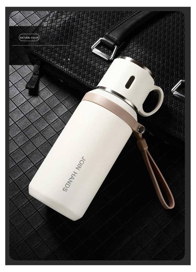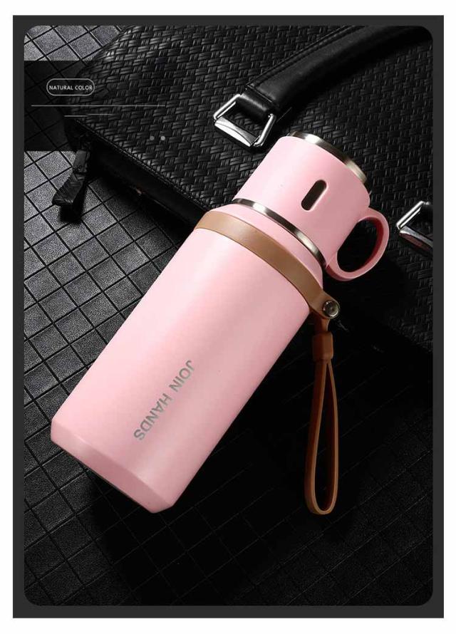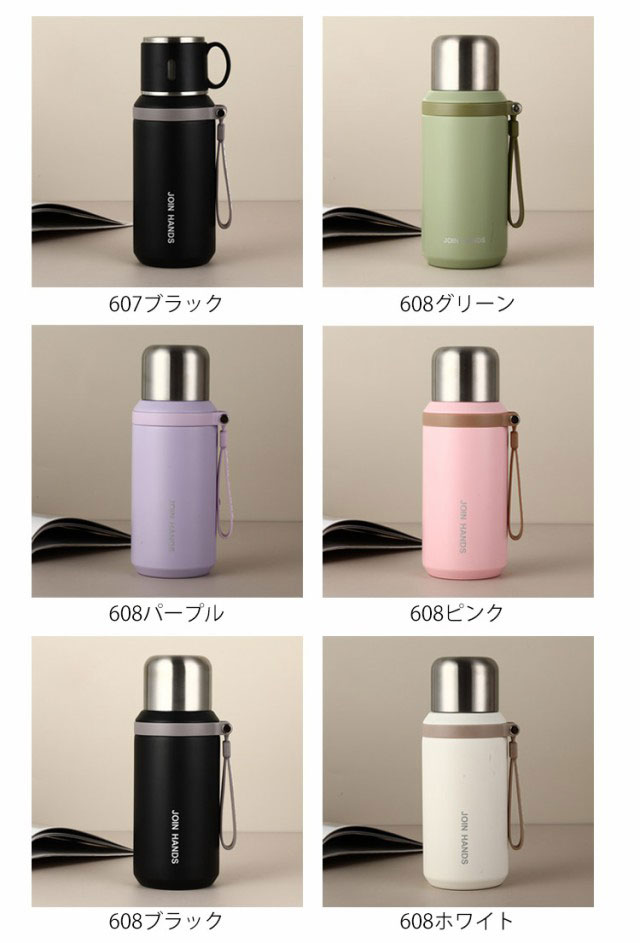 | おしゃれなカップ付きステンレスマグボトル。 直飲み&コップ飲みの2way水筒、飲みたい時にサッと水分補給ができる直飲みと、コップを使ってゆっくり飲み物を楽しむ2通りの使い方ができます。 安全・安心なステンレス製カップ付き、ドリンクが熱いときはカップで冷ましたり、服薬で水が欲しいときにカップを使えるのが便利。直飲みは苦手という方にもおすすめです。 軽量ながら、真空二重構造で保温・保冷効果も◎。ワンタッチの注ぎ口や、静かに置ける滑り止め付きの底面、持ちやすいストラップなど使いやすさも抜群です。 茶葉や氷が出てこないストレーナー付き(取り外し可能)、ハーブやフルーツを入れて、フレーバーウォーターを作るのにも最適な水筒です。 | |