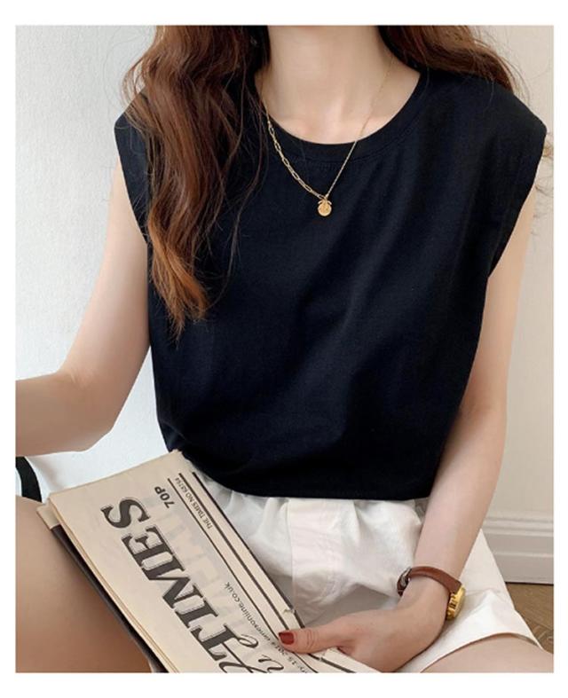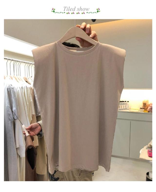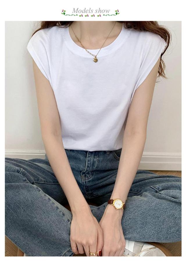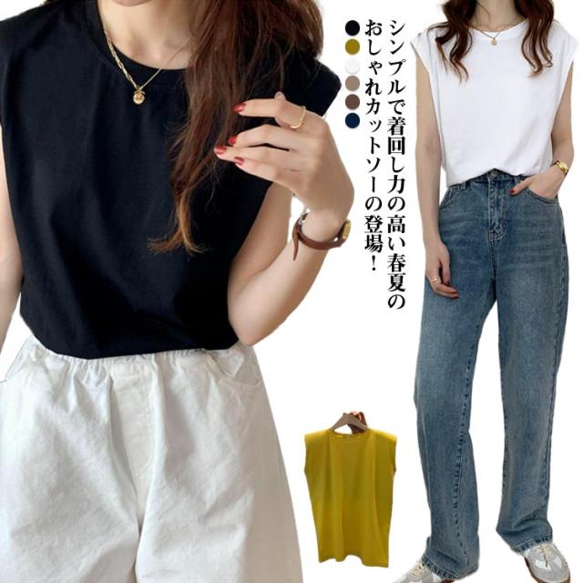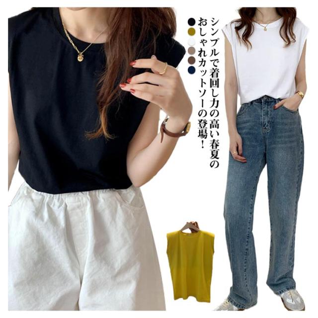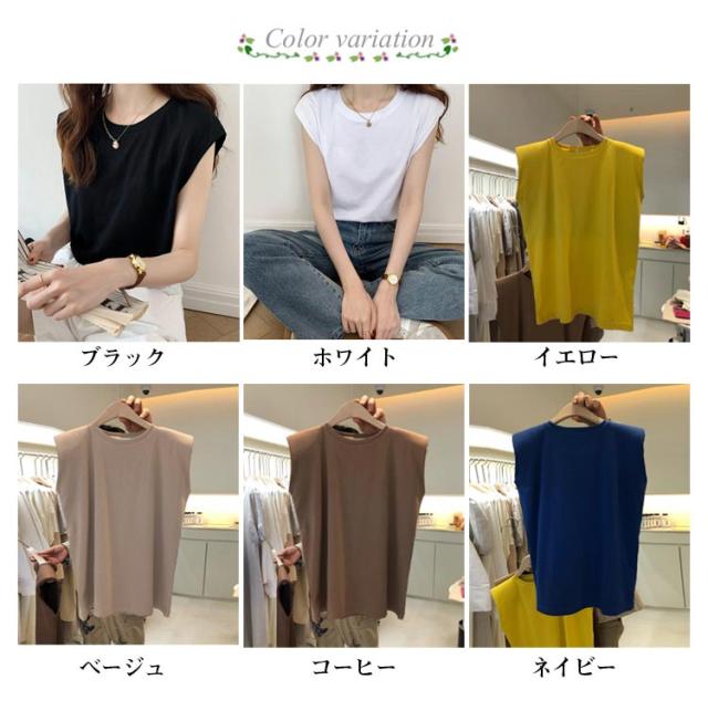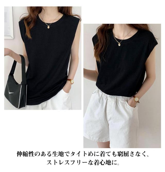 フレンチスリーブ Tシャツ レディース タンクトップ キャミソール ロンT クルーネック トップス インナー ノースリーブ 無地 インナーシャツ カットソー 袖なし 体型カバー ゆったり 伸縮性 通気性 シンプル カジュアル 春夏 夏服