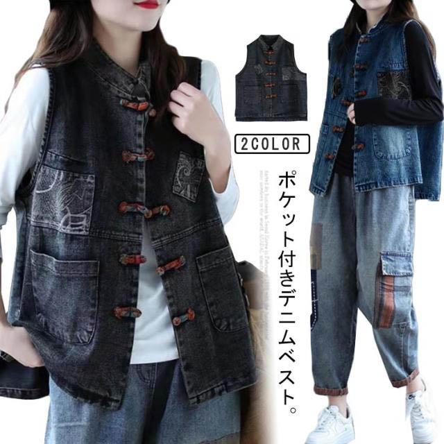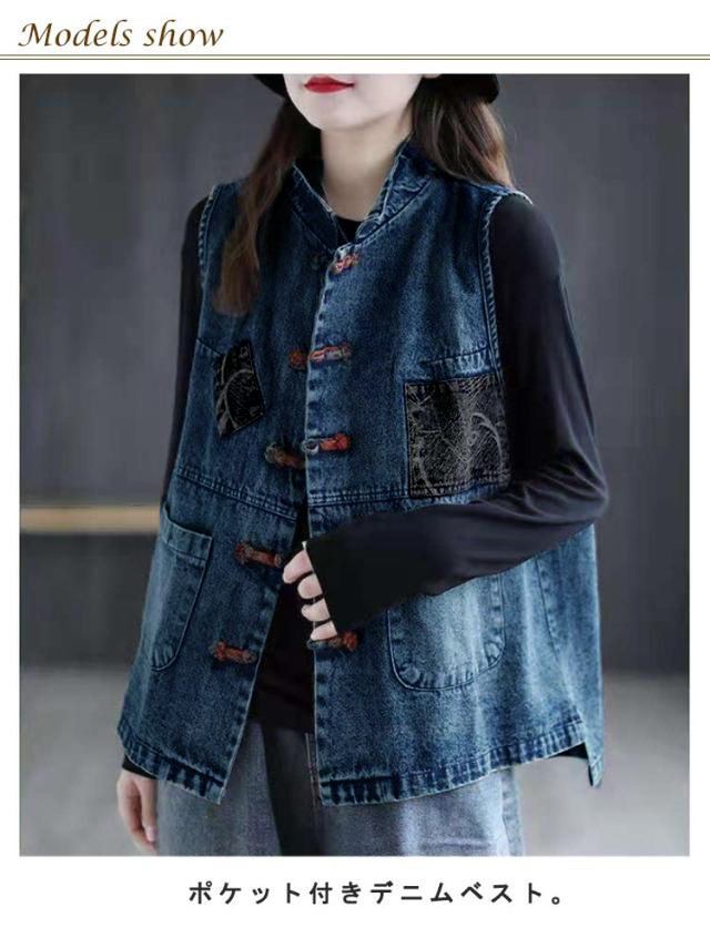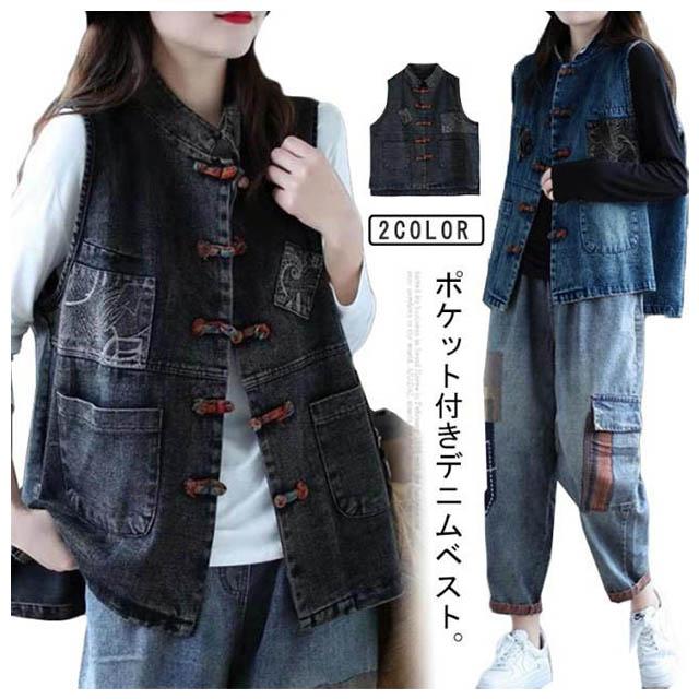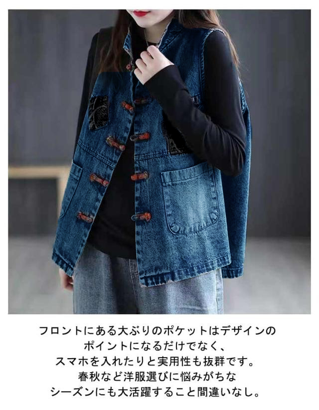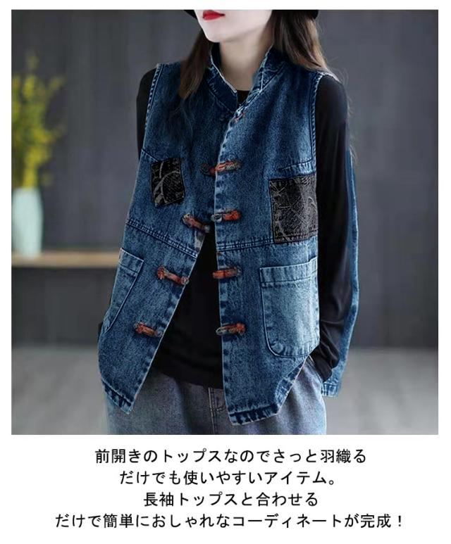 デニムベスト ジレ レディース 前開き ベスト レディース デニム おしゃれ 春夏秋 ノースリーブ 大きいサイズ ジレベスト ベスト ジレ フォーマル カジュアル 無地 通勤 OL オフイス 上品 きれいめ ビジネス