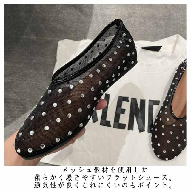 ビジュー パンプス ぺたんこ シースルー メッシュサンダル フラットパンプス キラキラ 透け感 おしゃれ 通気性 蒸れない透け感 おしゃれ 通気性 蒸れない 歩きやすい 柔らか 疲れない メッシュフラットパンプス ブラック ベージュ