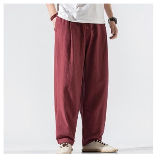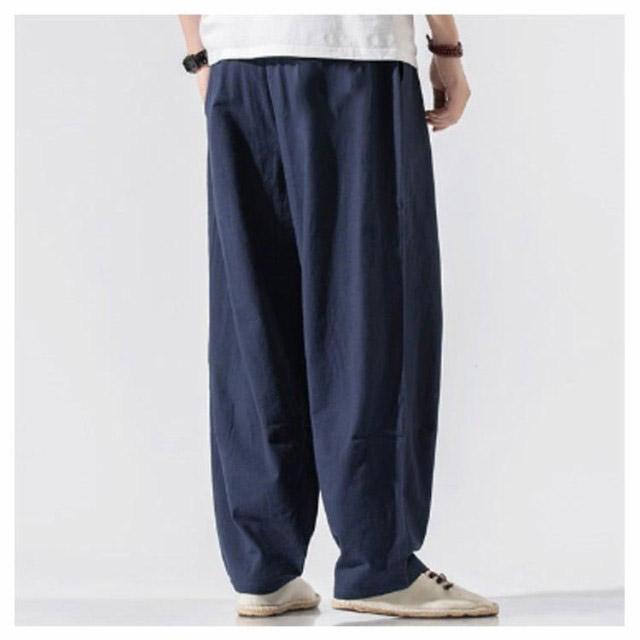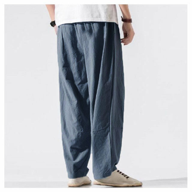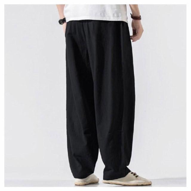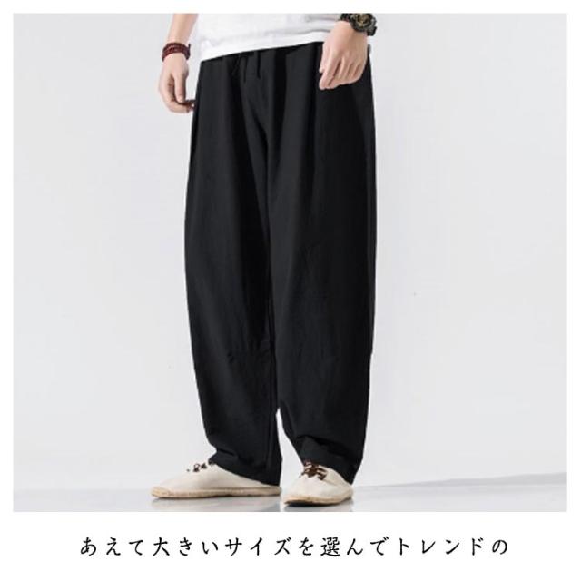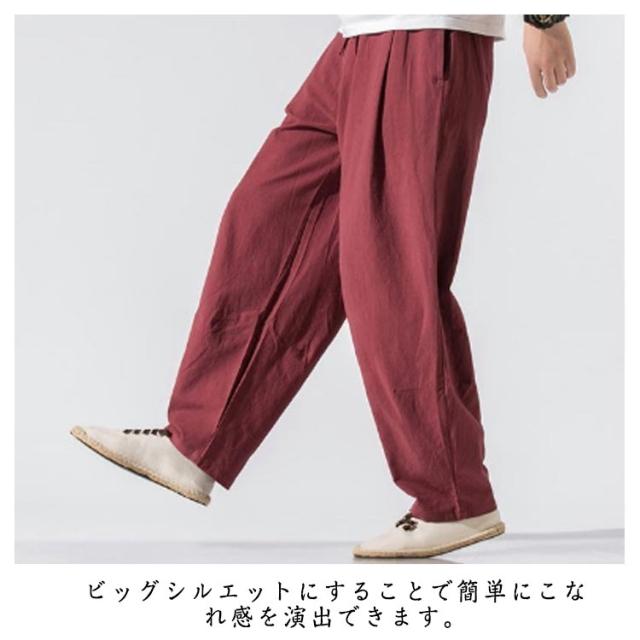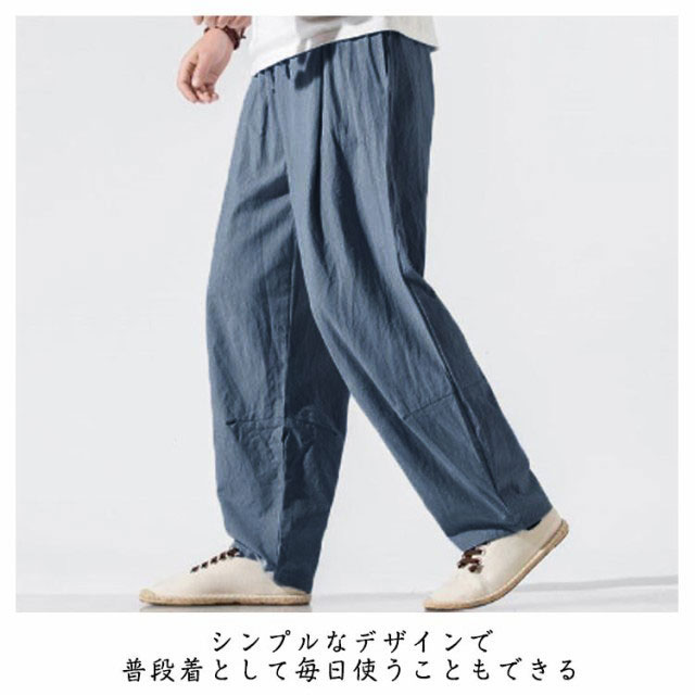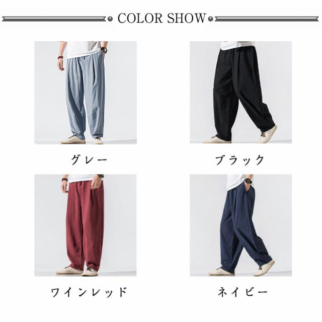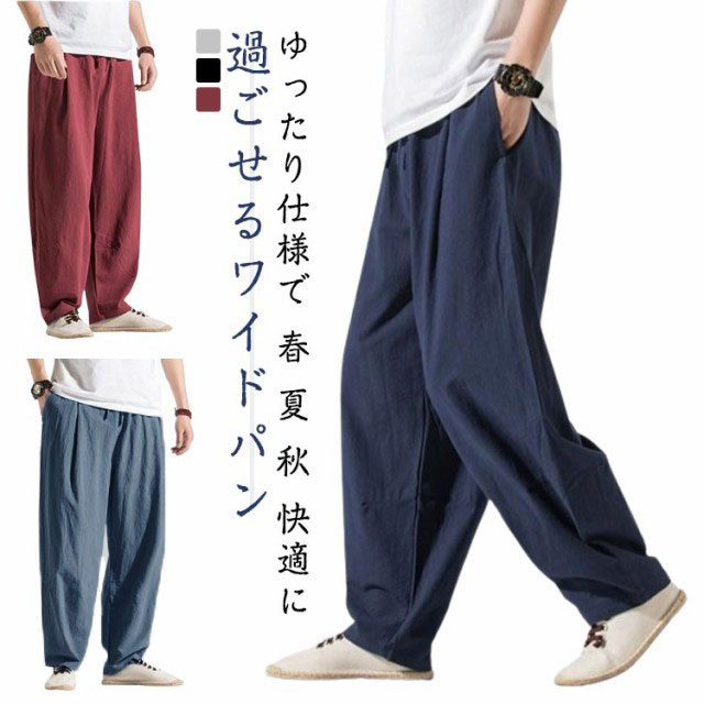 ワイドパンツ メンズ バギーパンツ 太め リラックス ロングパンツ カジュアルパンツ サルエル イージーパンツ 無地 薄手 ボトムス ウェストゴム コットン オールシーズン 長ズボン 父の日 春 夏 秋 冬