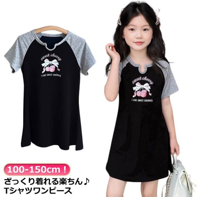 Tシャツワンピース トップス 半袖 子供服 女の子 薄手 涼しい 小学生 中学生 ファッション ガールズ キッズ ジュニア 韓国子供服 大人っぽい ダンス 春 夏 Tシャツ カットソー 膝丈 チュニックワンピース ルームウェア 100 110 120 130 140 150 送料無料