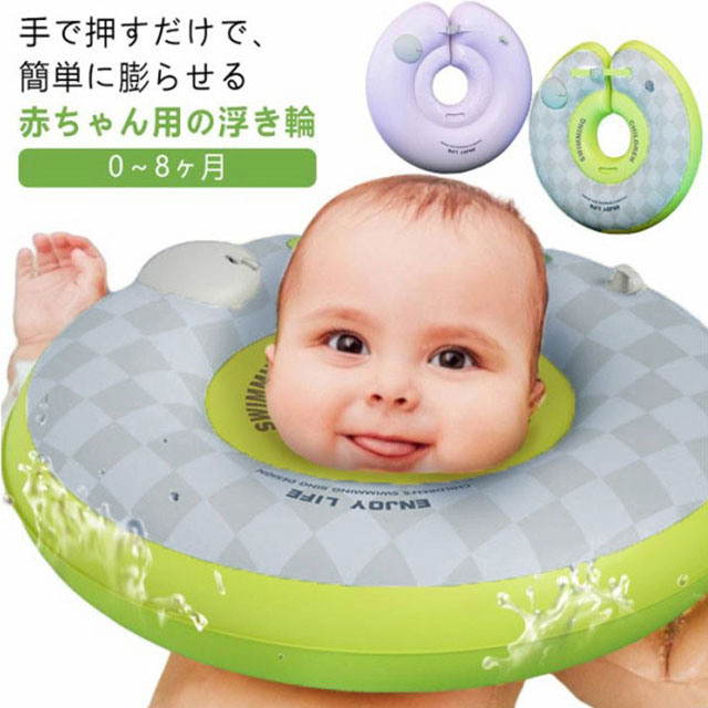 押すだけで膨らむ 浮き輪 ベビーフロート お風呂 浮き輪 赤ちゃん ベビー うきわ首リング ベビー浮き輪 ポンプ内蔵 赤ちゃん 浮き輪 0〜8ヶ月 首浮き輪 プレスイミング お風呂のおもちゃ 出産祝い プール 浮き輪首リング プール 送料無料