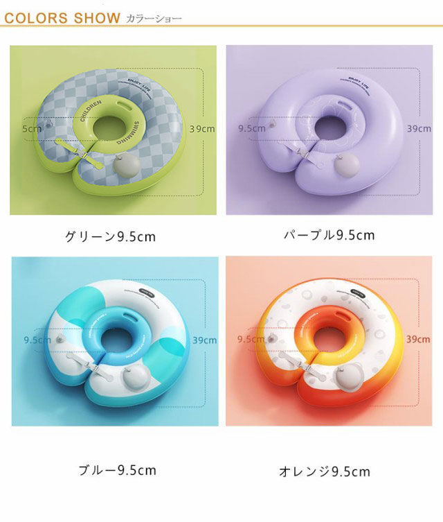 | サイズについての説明 | 9.5cmサイズ 適応年齢0-8ヶ月 適応体重4-11kg 首直径9.5cm 外径39cm 10.5cmサイズ 適応年齢0-8ヶ月 適応体重4-11kg 首直径10.5cm 外径39cm |