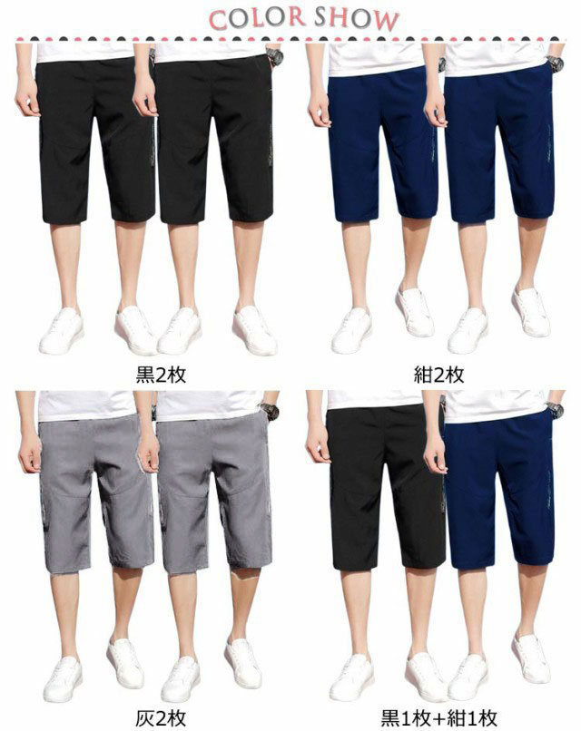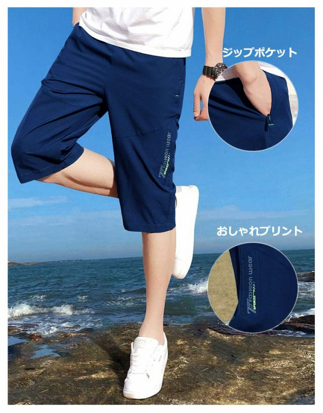 ハーフパンツ メンズ 7分丈 ひざ下 パンツ 2枚セット 七分丈 クロップドパンツ ジップポケット プリント 夏用 ハーフ ルームウェア クロップド アウトドア ゆったり 夏 大きいサイズ おしゃれ シンプル 膝下丈 ひざ下丈 ボトムス カジュアル イージーパンツ