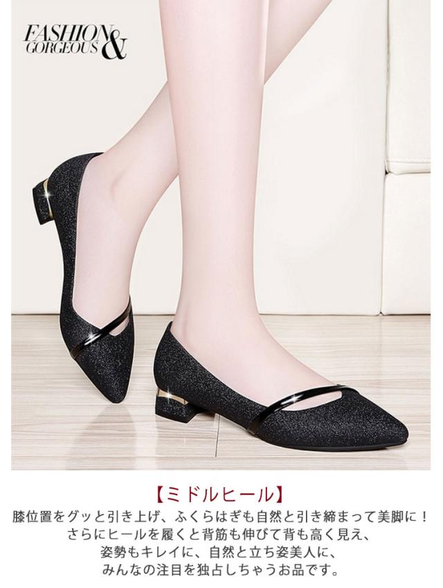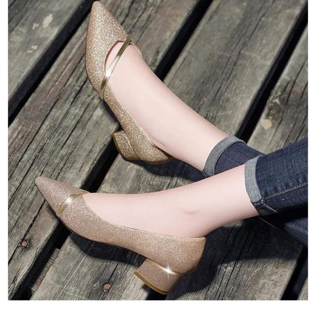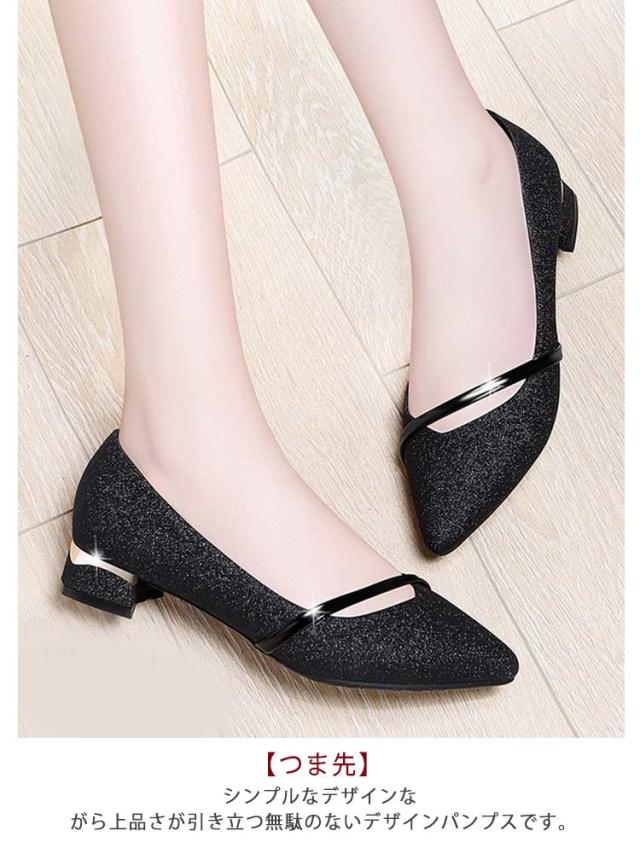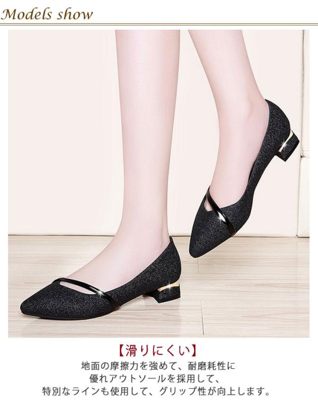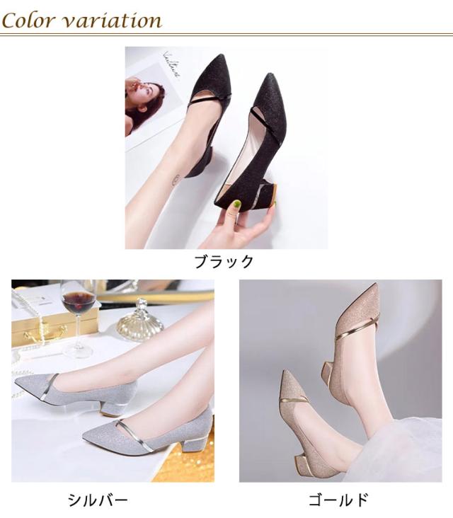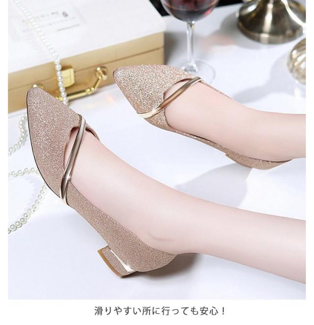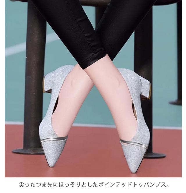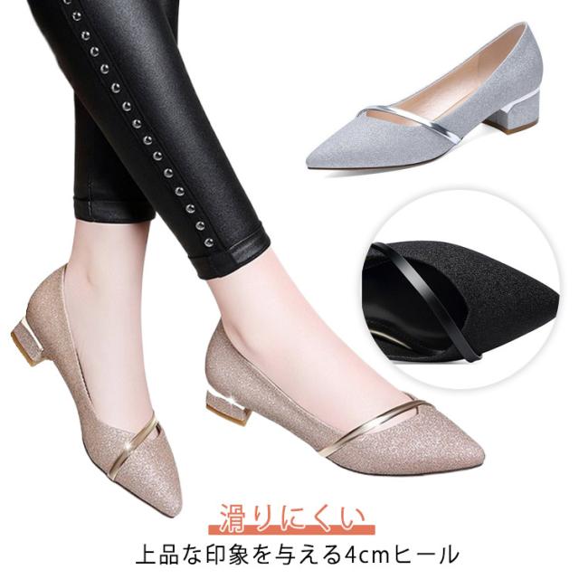 キラキラ スパンコール ポインテッド パンプス ウェディングシューズ 4cm ハイヒール レディース ハイヒール レディース 歩きやすい 太ヒールパンプス 結婚式 大きいサイズ 靴 柔らかい カジュアル 無地 滑り止め 軽量