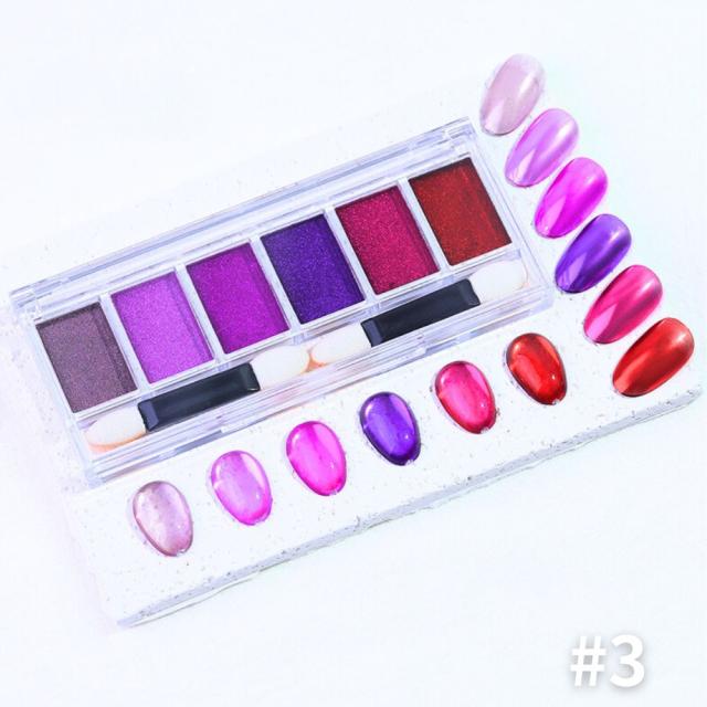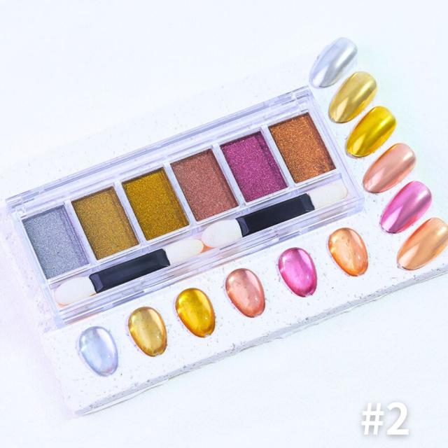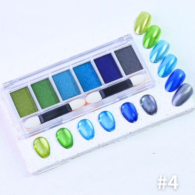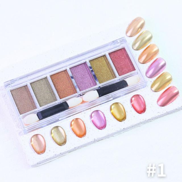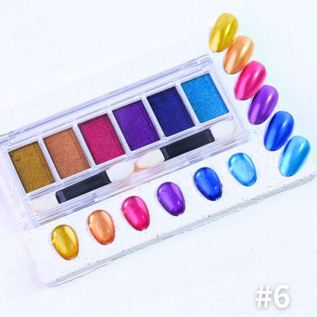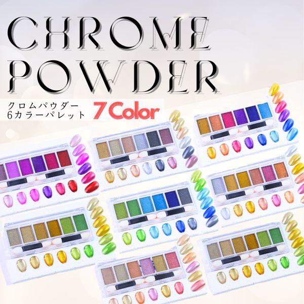 6色クロムパウダーパレット ネイルパウダー パウダーパレット ミラーパウダー ミラーネイル ジェルネイル カラージェル ニュアンスクロムパウダー メタリックパウダー リングネイル ジェルネイル ネイル メタリック