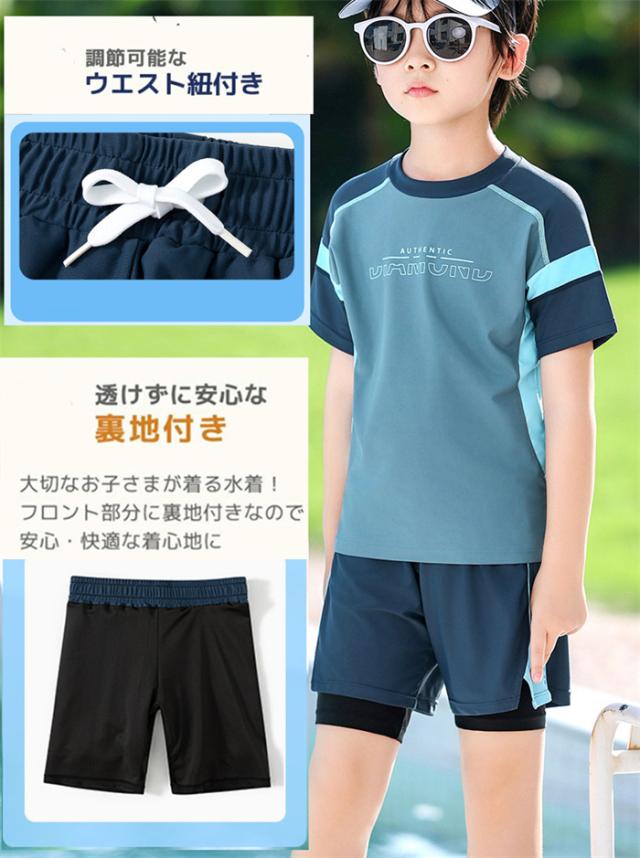 【品質保証】水着 ラッシュガード 男の子 水着 キッズ 水着 紫外線防止 子供 セパレート水着 子ども水着 大きいサイズ キッズ 水着 ボーイ ショートパンツ トップス スクール水着 スポーツスイムウェア ジュニア 小中学生 スイミング プール 100 110 120 130 140 150 160 170