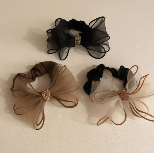 シュシュ リボン シフォン ヘアゴム 大人かわいい ヘアアクセサリー オーガンジー シアー 上品 キラキラ 韓国