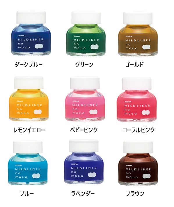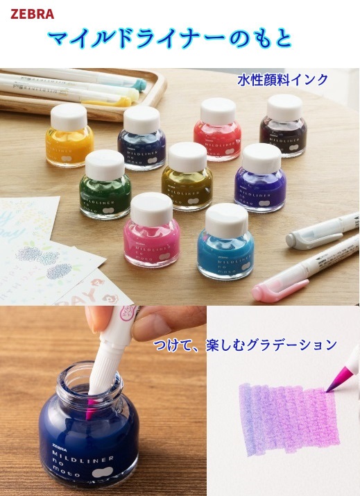 ゼブラ マイルドライナーのもと 9色 P-WI1 935円 10ml つけて楽しむ グラデーション マイルドライナーブラッシュ イラスト カード ぬり絵 カリグラフィー レターパックOK