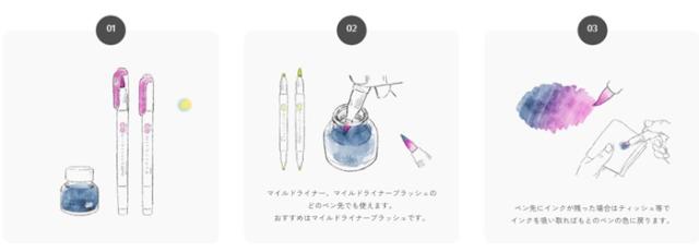 マイルドライナーに浸けてグラデーションを楽しめるインクです。