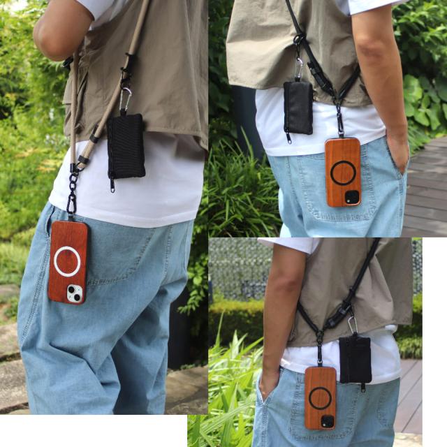 iphone ケース ウッド iphone17 iphone16 iphone15 iphone14 pro max 13 12 マグセーフ対応 magsafe ショルダー ストラップ 小銭入れ付き マグネット アイフォン 17 16 15 14 13 se3 se2 天然木 木製 お財布 カード収納 17pro air 16pro 13mini メンズ アウトドア 送料無料