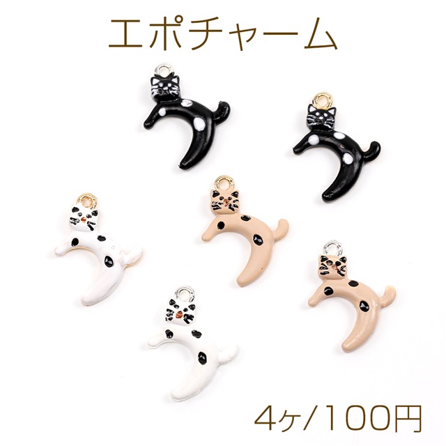 エポチャーム 猫チャーム キャットチャーム ねこエポチャーム 猫メタルチャーム 1カン付き 約12×17mm(4ヶ)