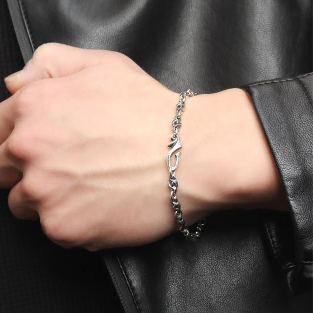 トライバル 炎 ブレスレット シルバー 925 デザインチェーン さりげない ハード ワイルド かっこいい メンズブレスレット ブレス メンズ 男性 彼氏 夫