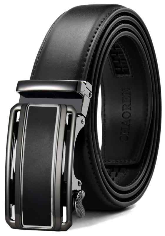 [CHAOREN] ベルト メンズ ビジネス 大きいサイズ オートロック式 紳士用ベルトスーツ 革 穴なし 無段階調整 コンフォート 35mm幅 箱付き (Aブラック, 全長135cm/ウエスト75cm〜120cmに最適)