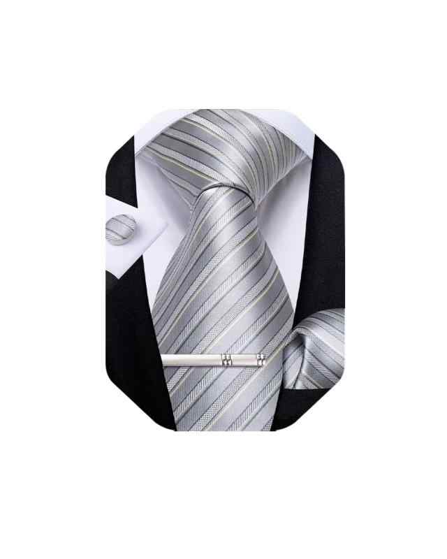 [DiBanGu] ネクタイ ストライプ ネクタイ ハンカチ カフスボタン タイピン セット 結婚式 ビジネス 入学式 卒業式 忘年会 (シルバー1)
