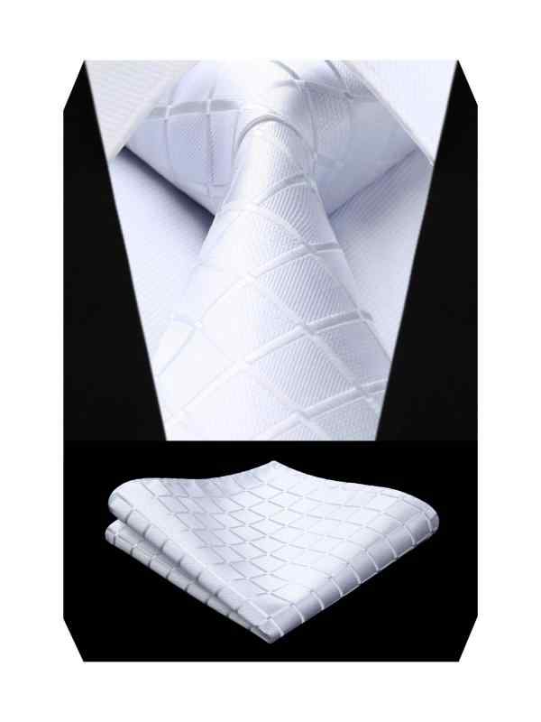 [HISDERN] HC-02 ブランド ネクタイ セット 幅8.5cm チーフ付き 洗える 成人式 ビジネス 就職用 結婚式 就活 入学式 プレゼント 45柄 (01ホワイト(チェック))