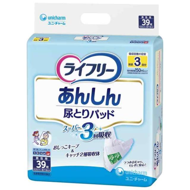 ライフリー テープ用尿とりパッド あんしん尿とりパッドスーパー 3回吸収 (39枚 (x 1), 男性用)