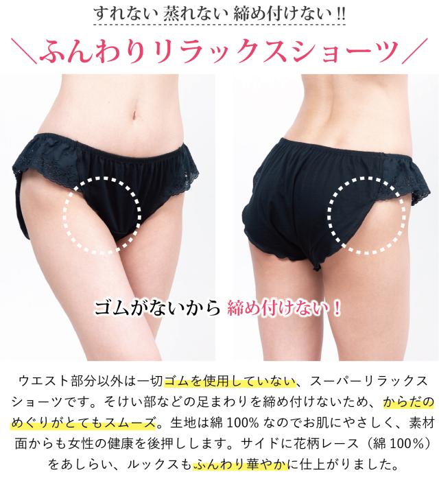ショーツ リラックス 綿100% 日本製 レディース 可愛い リラックスショーツ ふんどしショーツ 鼠経部 締め付けない コットン100% ふんどしパンツ おやすみパンツ おやすみショーツ リンパ解放 リンパ 開放 30代 40代 50代 大きいサイズ レース 花柄 お洒落