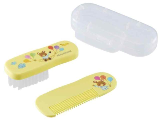 OSK(オーエスケー) ベビーヘアケアセット ミールタイム ブラシ クシ イエロー 日本製 ケース付 抗菌 衛生的 赤ちゃん用 BHC-10