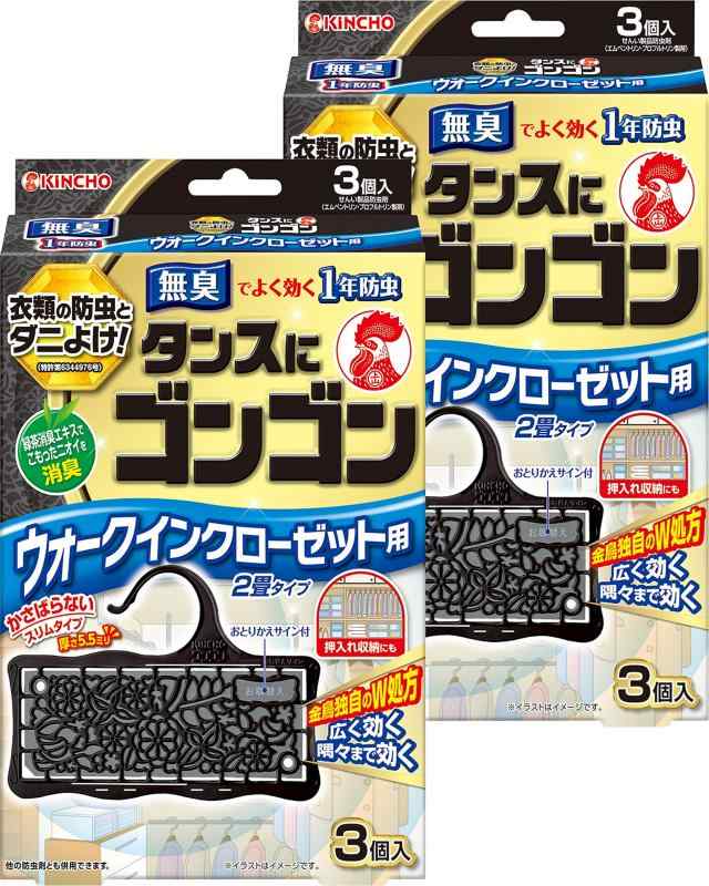 【まとめ買い】タンスにゴンゴン 防虫剤 ウォークインクローゼット用 3個入 無臭 消臭 (1年防虫・防カビ・ダニよけ)×2