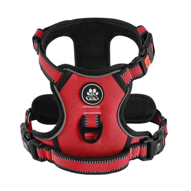 IVY&LANE 犬用ハーネス 喉に優しい 小型犬、中型犬、大型犬用 調節可能 夜間反射材 通気性 引っ張り防止 簡単着脱 散歩 犬 ハーネス 柴犬 秋田犬 訓練 ドッグ 胴輪 (赤, L)