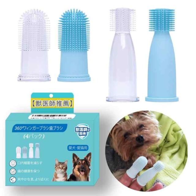 バイレウメック 犬用歯ブラシ、猫用歯ブラシ、獣医監修の中小型犬向け歯ブラシ【4個セット】- 口腔敏感犬猫専用、厚さ2mmの加厚タイプ (ブルー+透明)