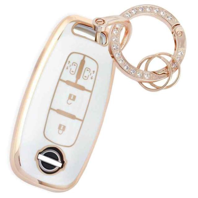 [YANMW] キーケース キーカバー スマートキーケース 可愛 キーホルダー オシャレ (適合日産C4, ゴールドホワイト)