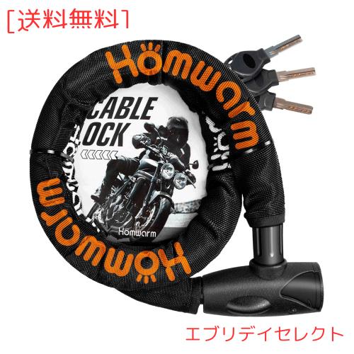 Homwarm バイクロック チェーンロック バイク 自転車 ワイヤーロック φ(直径)22mm×1200mm 頑丈 盗難防止 鍵3本セット (ブラック)