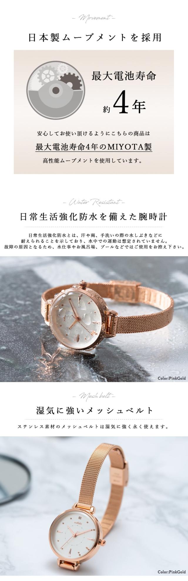 腕時計 レディース ブランド 5気圧防水 4年電池寿命 メッシュベルト 金属ベルト メタル シンプル ウォッチ きれいめ かわいい おしゃれ 大人 仕事 学生 20代 30代 40代 女性 プレゼント ギフト 見やすい 日本製ムーブメント 1年間のメーカー保証付