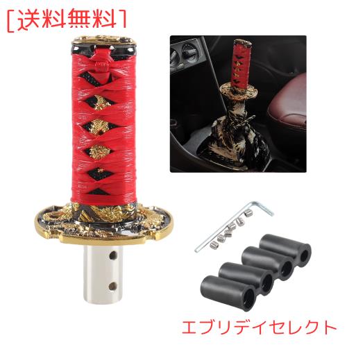VEHSUN 汎用 シフトノブ 日本刀 トラック ギアノブ 武士刀 ロング 長さ100mm 5速 6速 汎用 和風 アダプター 4種類付 AT MT 車用 ドレスア