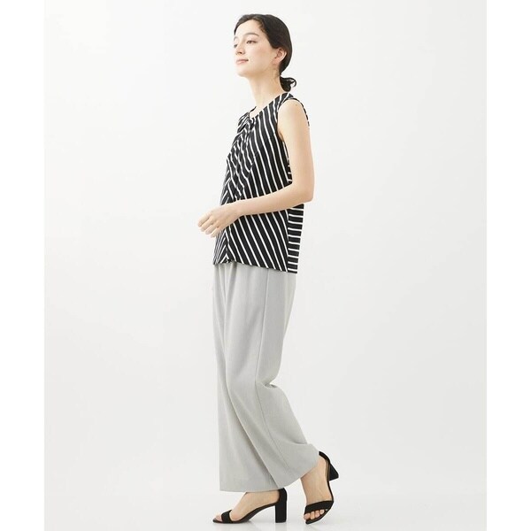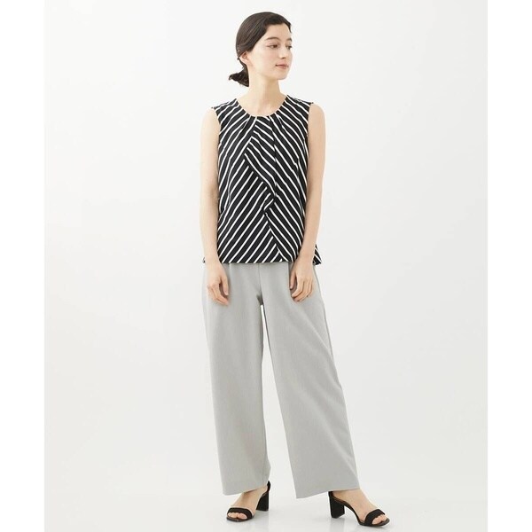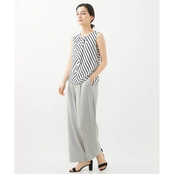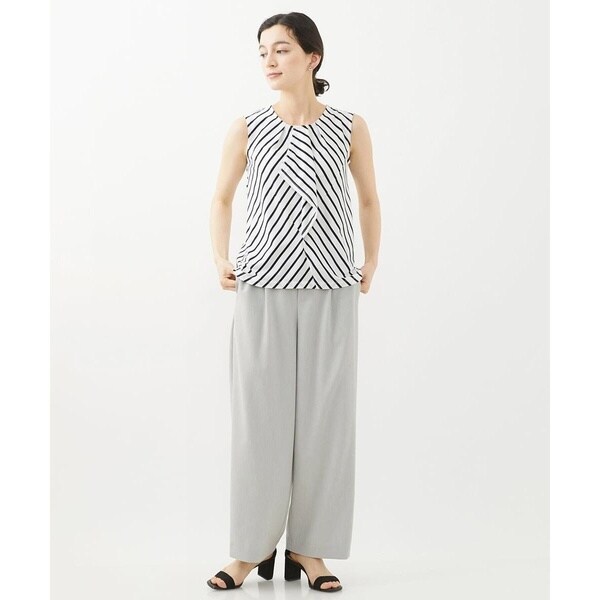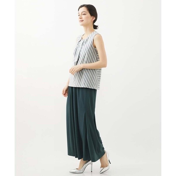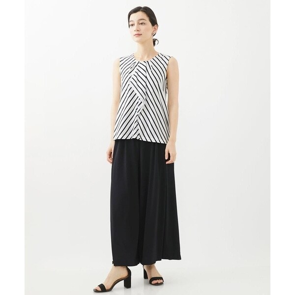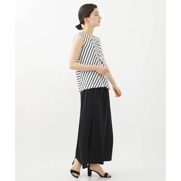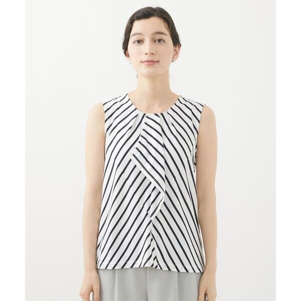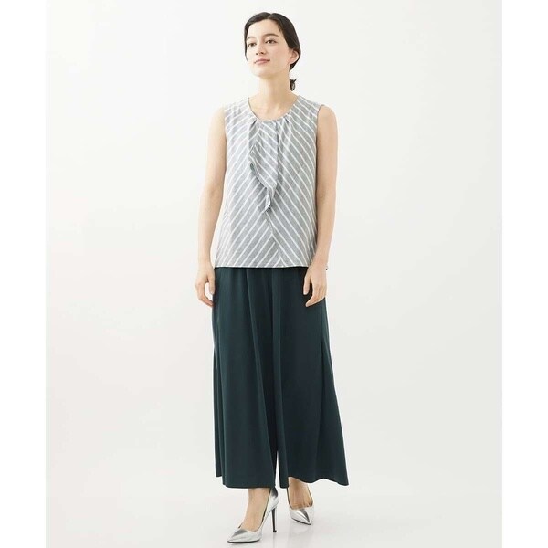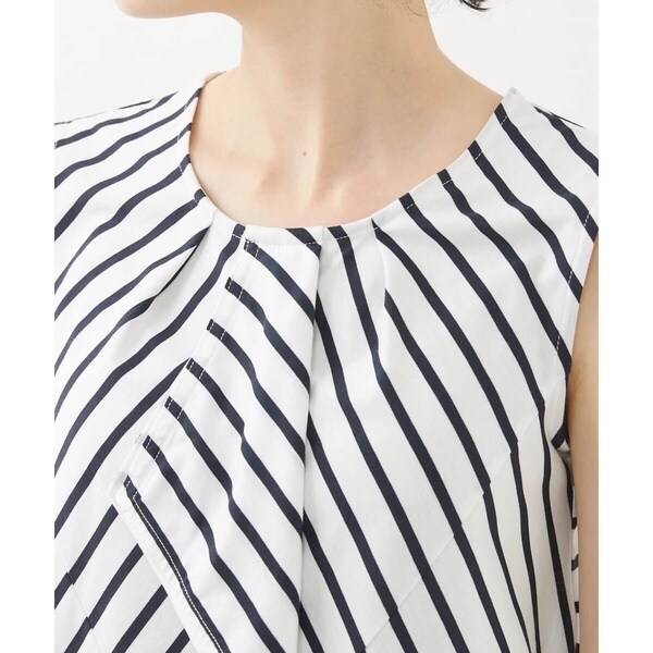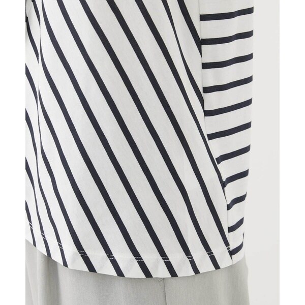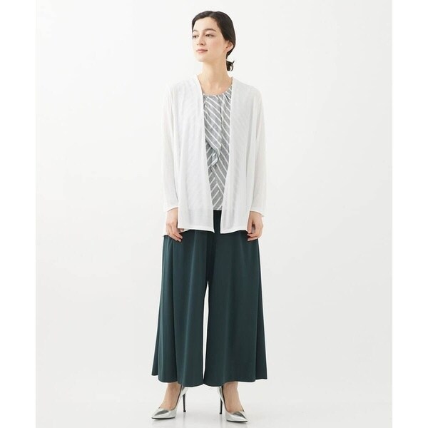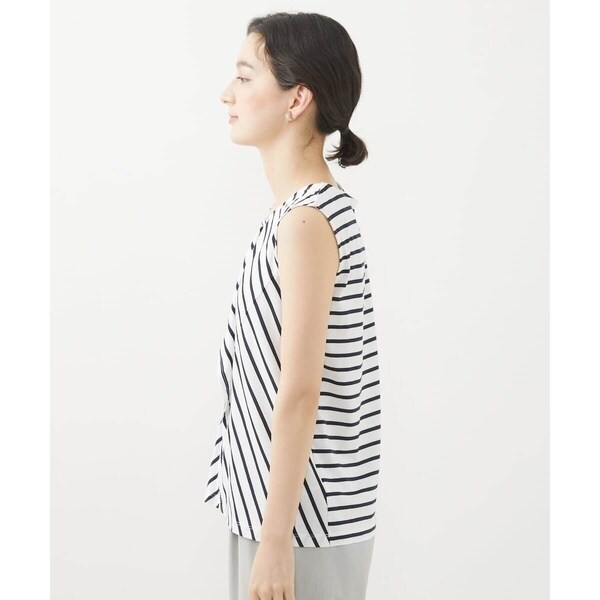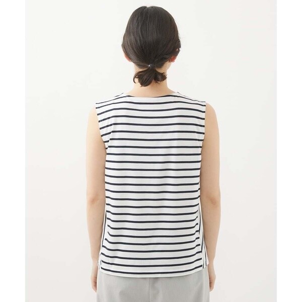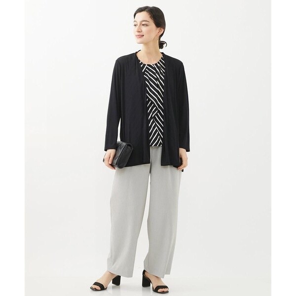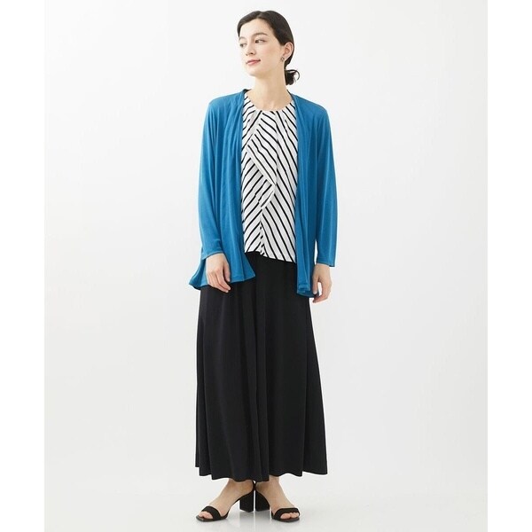 フライスカーディガンとボーダータンクトップの嬉しいセットアイテム。肌離れのよいサラッとしたフライスを使用したカーディガンは夏の日除けや冷房対策におすすめです。ボーダーを切替えて動きをつけ、胸元にドレープを入れたデザインのタンクトップがセットになっており別々でも着用いただけるのでコーディネートの幅も広がります。