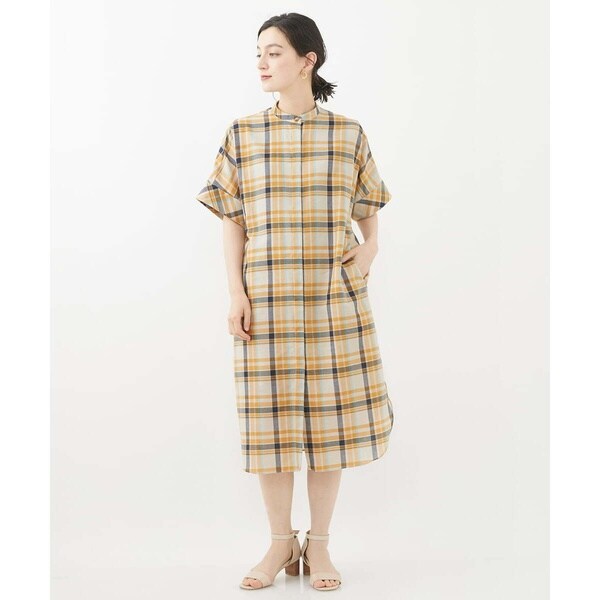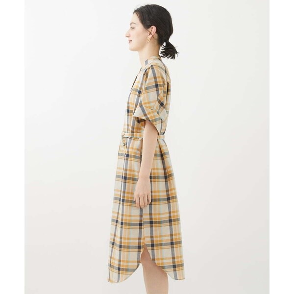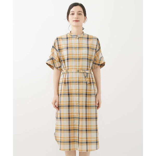 クラシックなチェックにドライなタッチの特徴を活かしたシャツワンピース。