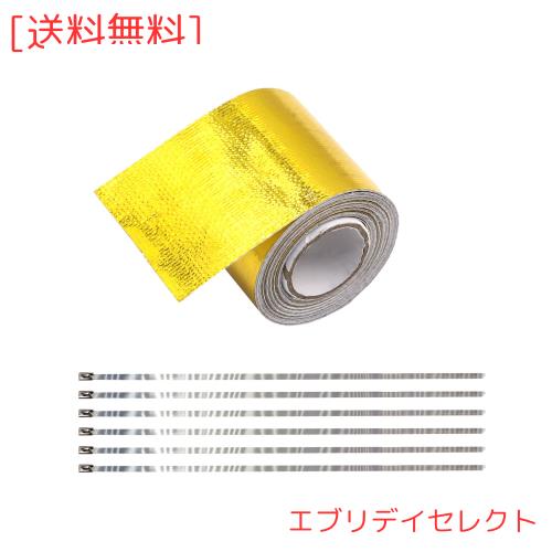 ★【Aoling 遮熱テープ 車用 ゴールド サーモ テープ アルミ箔テープ 1巻き&タイラップ6本セット】