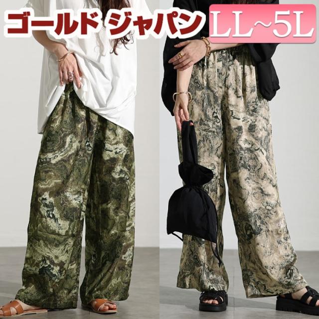 春新作 大きいサイズ レディース パンツ ズボン ニュアンス柄ワイドパンツ ボトムス ロングパンツ ワイドパンツ ロング ワイド ウエストゴム ストレッチ 伸縮 ポケット ギャザー ニュアンス柄 柄 アート 夏服 春服 秋服 LL 2L 3L 4L 5L ブラック 黒 カーキ ゴールドジャパン