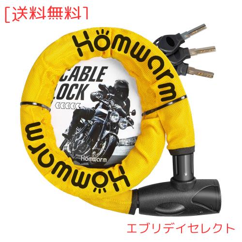 ◆商品名:Homwarm バイクロック チェーンロック バイク 自転車 ワイヤーロック φ(直径)22mm×1200mm 頑丈 盗難防止 鍵3本セット (きいろ)