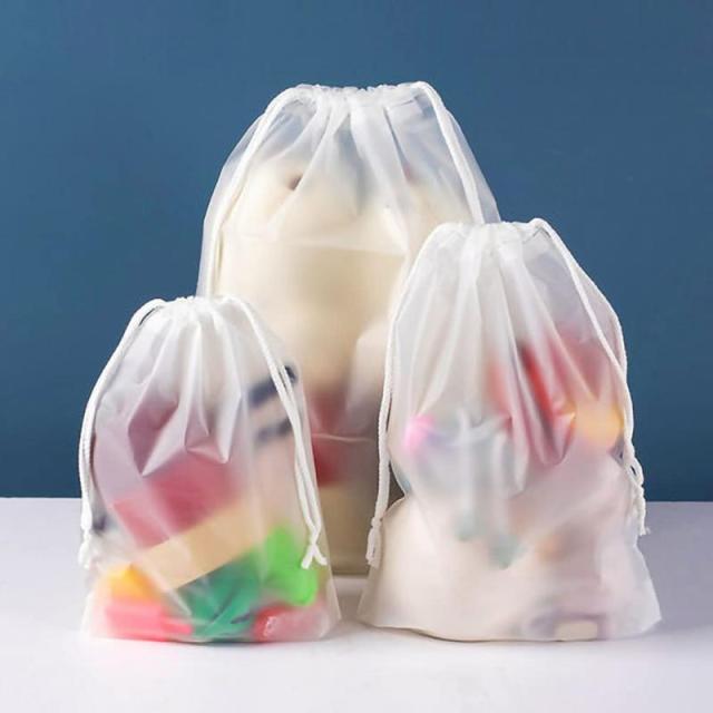 Futakuchi ビニール 巾着袋 セット防水 ビニール袋 旅行用 収納袋 濡れた服 水着 靴袋 防塵 温泉バッグ トラベル 3サイズ リユーザブル (白い紐, 15セット:Lx6枚;Mx6枚;Sx3枚)