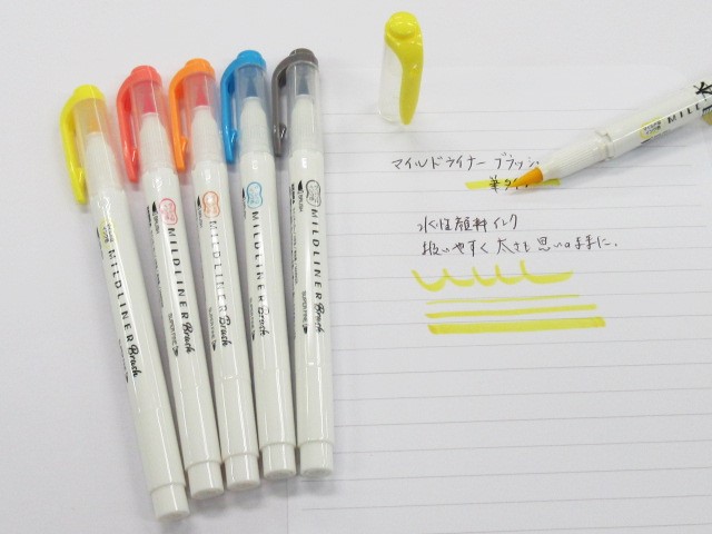 ゼブラ マイルドライナーブラッシュ 5色セット 筆 WFT8-5C 1000円 5種類 ほんのり蛍光 親しみマイルド 渋マイルド 晴れやかマイルド 和みマイルド ノート メール便送料込