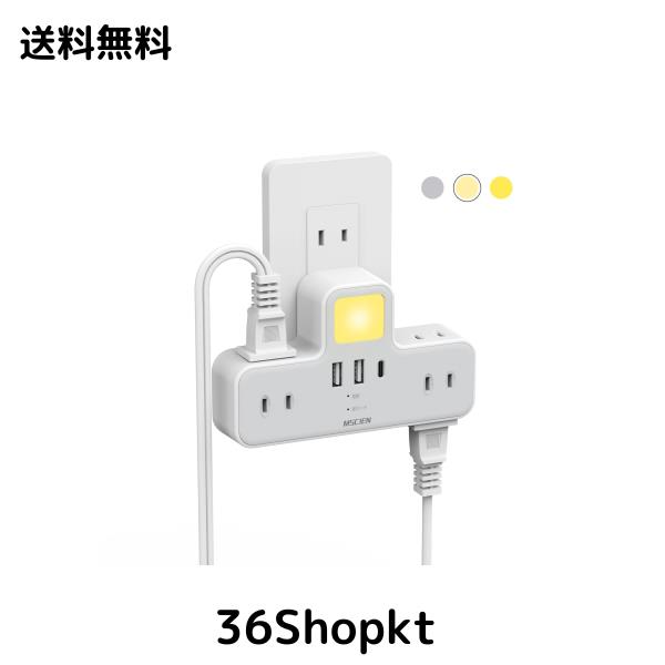 Mscien コンセント 分岐 LEDナイトライト usb コンセント 電源タップ usb付き 1個usb-c 2個usb-a 6個AC口 USB-C コンセントタップ 雷ガー