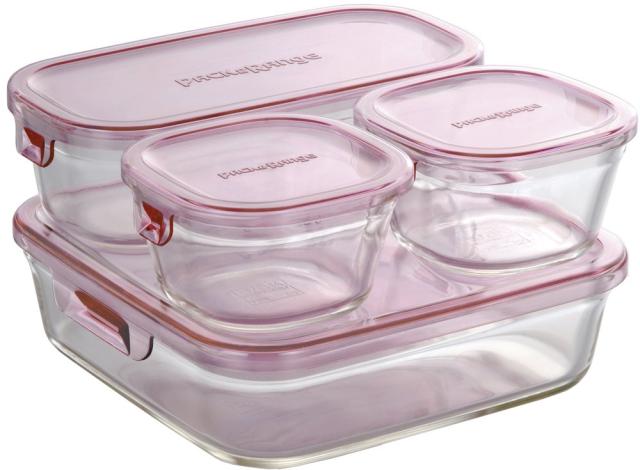 iwaki(イワキ) 耐熱ガラス 保存容器 ピンク 4個セット パック&レンジ PS-PRN-4P2