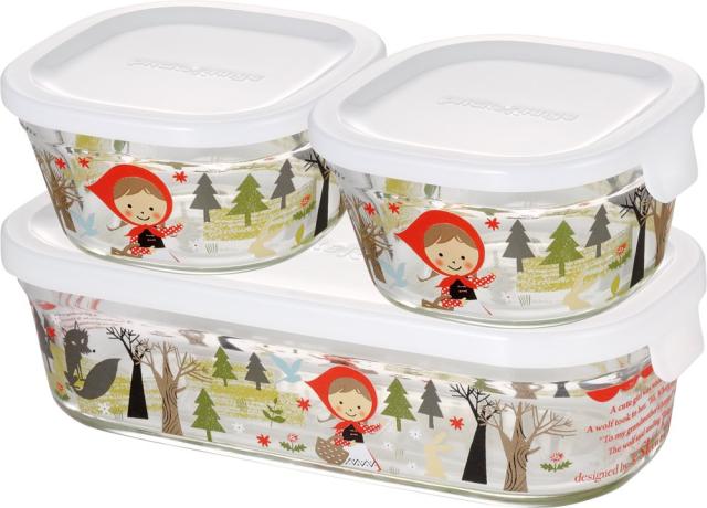 ◆商品名:iwaki(イワキ) 耐熱ガラス 保存容器 シンジカトウ precious red hood 3個セット パック&レンジ PS-PRNSNA31