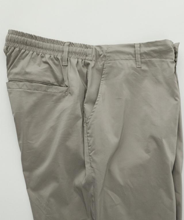 いくら軽くて丈夫であっても、動きにくいパンツであれば穿く機会は自然と減っていってしまいます。毎日でも穿きたくなるような一本を目指して、機能面にも抜かりなく設計いたしました。生地は斜め方向へのストレッチ性に優れたものを採用。靴紐を結ぶときや自転車に乗るときなどの膝の突っ張り感を軽減します。ウエスト後ろ側にはゴムを入れて脱ぎ穿きしやすいイージー仕様に。実用性の高いフロントファスナーとベルトループも付けました。タックインスタイルもお手の物。ゴルフ場でもご利用いただけるような動きやすさと日常的に着回したくなるラクさを併せ持つ夏パンツに仕上げております。