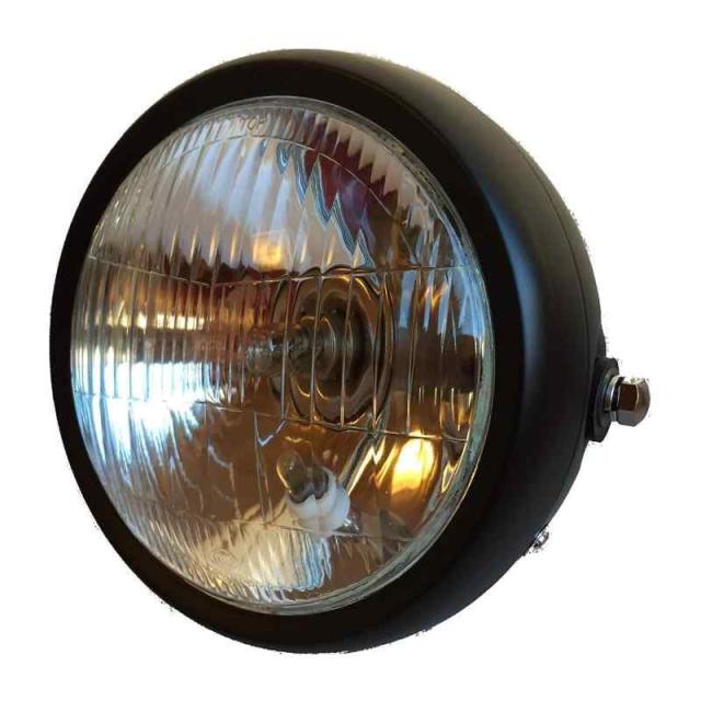 Karun 汎用 12V ヘッドライト ビンテージ バイク ブラック (クリアーレンズ)